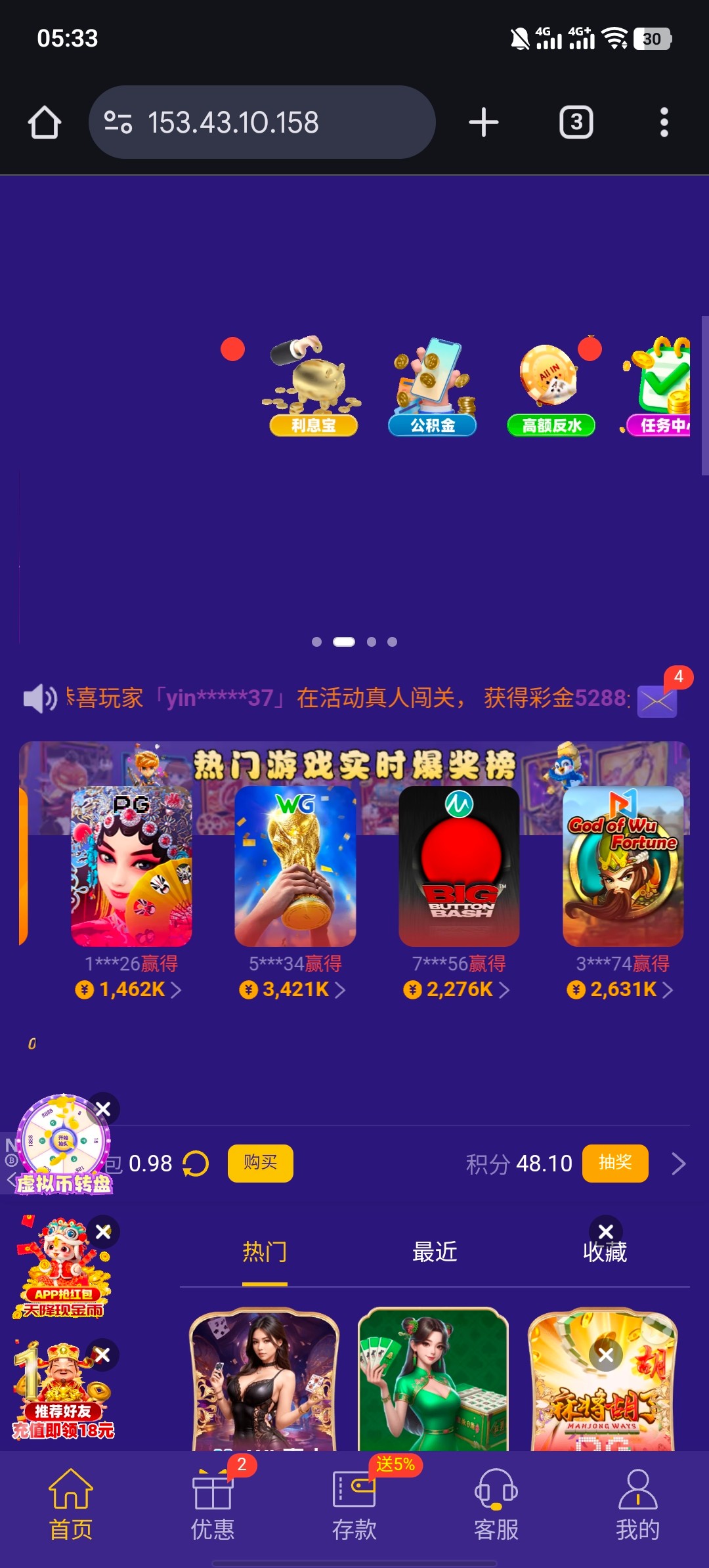 太久没玩,提现要充同等金额,倒下了,充不起了,谁玩?打出来37分,我三,还有月彩金和周彩金没领
