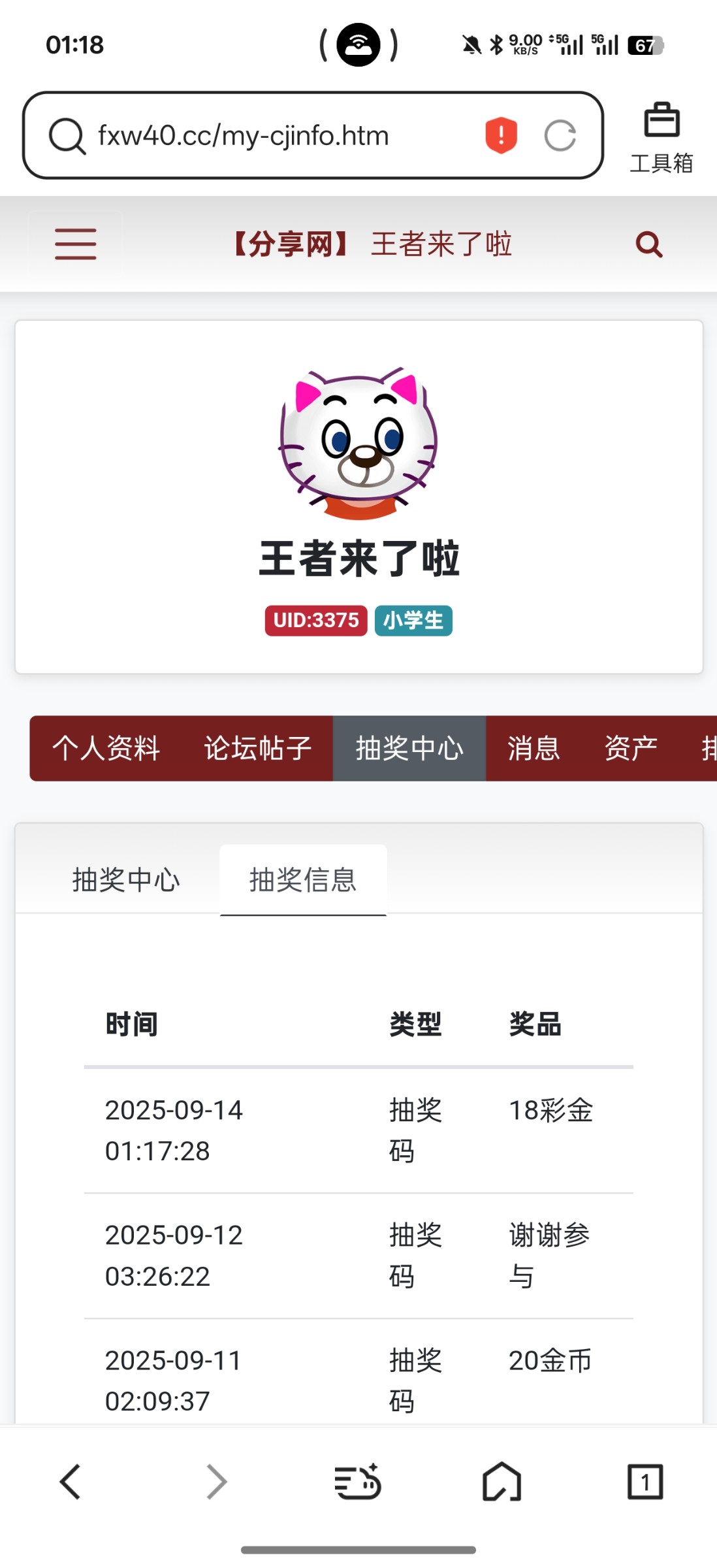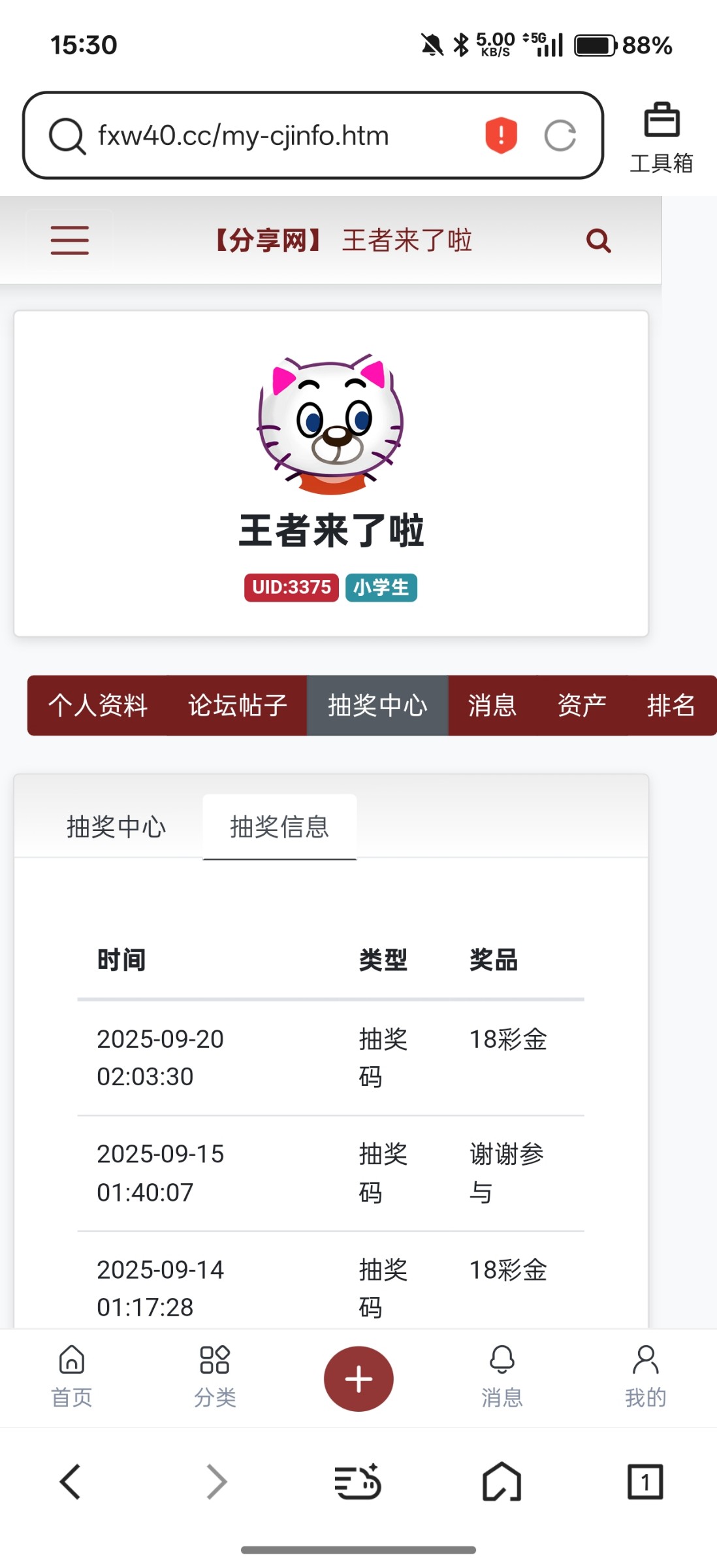 发截图了,中奖了,没收到1888金币